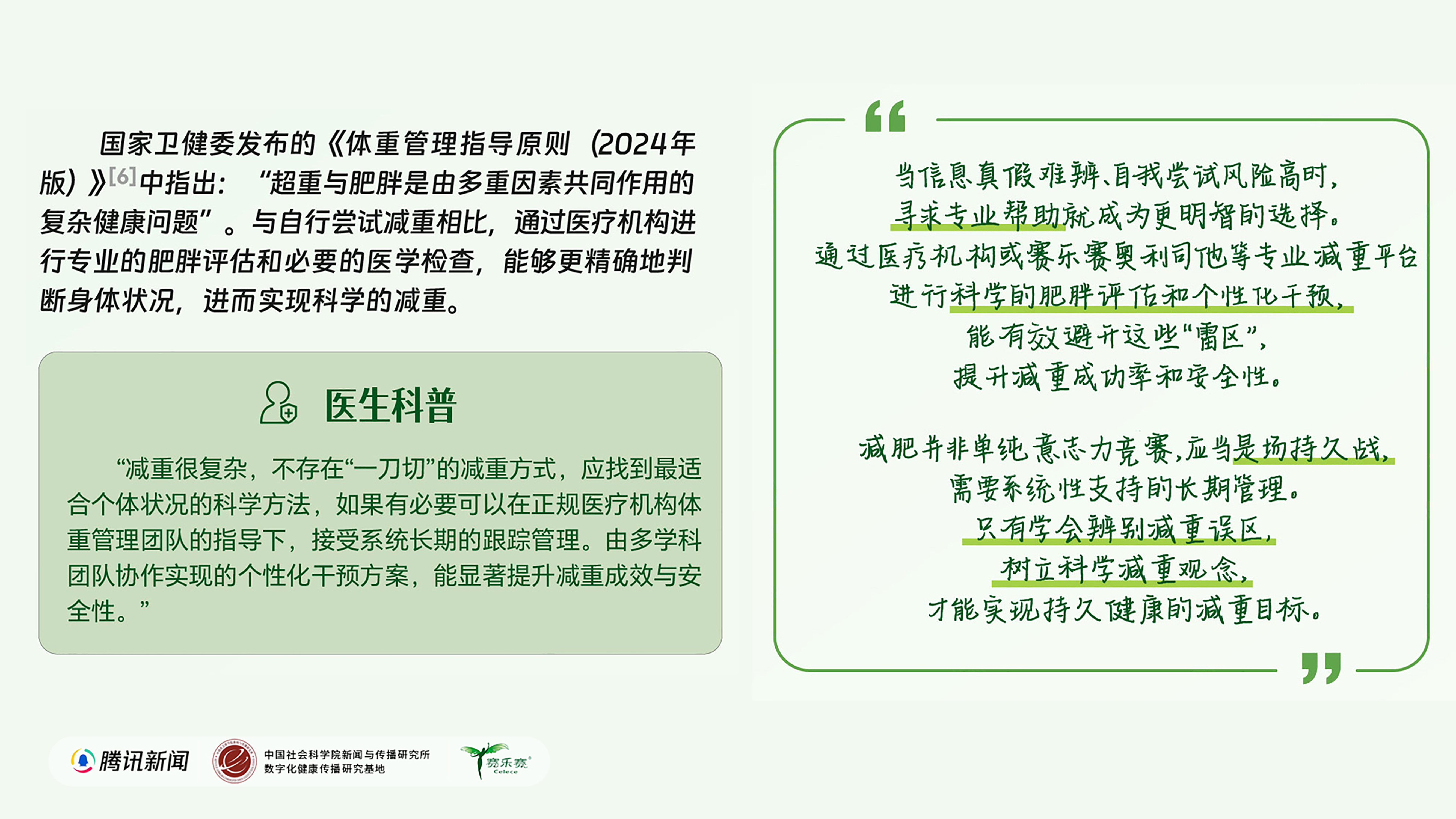面對信息真假難辨、自我嘗試風(fēng)險高的現(xiàn)狀,《藍皮書》強調(diào)了專業(yè)支持在科學(xué)體重管理中的核心價值。